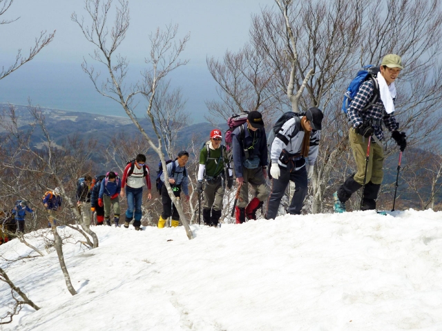 尾根伝いに残雪を踏みしめた市民米山登山=14日 (2013/04/18)