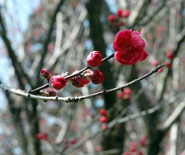 五分咲きとなり、紅色にほころんだハナモモ=市内谷根、慈眼寺 (2013/04/23)