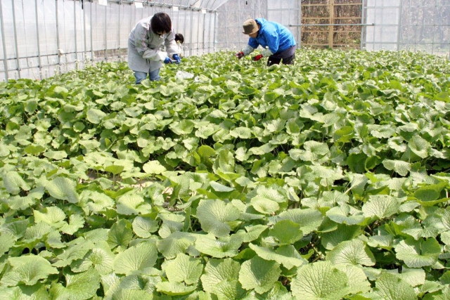 プレオープンに向け、ワサビの手入れが進められる「日本海 石地わさび園」 (2013/04/24)