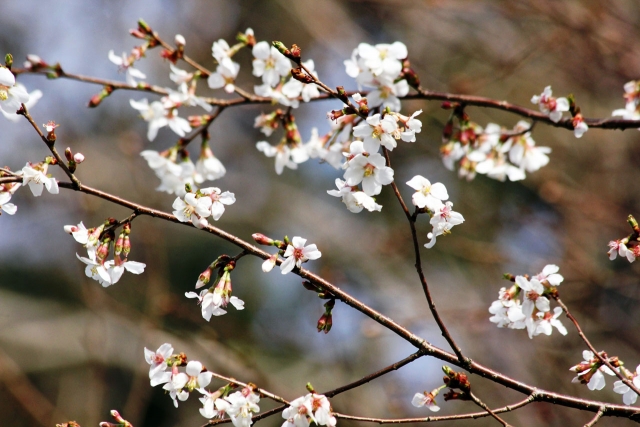 白くかれんな花を咲かせている二期桜=市内新道地内 (2013/03/26)