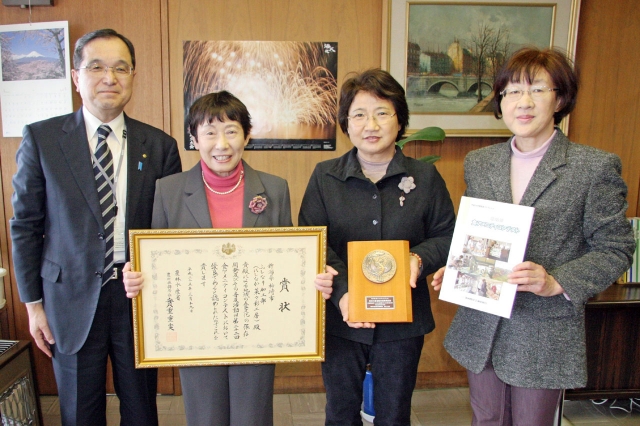 食アメニティコンテストの農村振興局長賞受賞を山田副市長に報告したふしなり加工部 (2013/03/27)