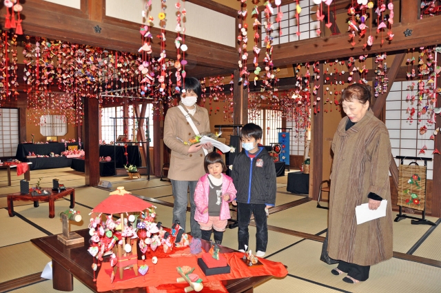 初日から大勢の人が訪れた「つるしびな飾り」展=2日、飯塚邸 (2013/04/02)