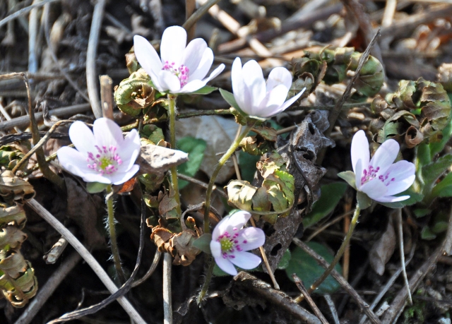 春の陽気に誘われ、ほころび始めた遊歩道の雪割草=西山・大崎雪割草の里 (2013/03/18)