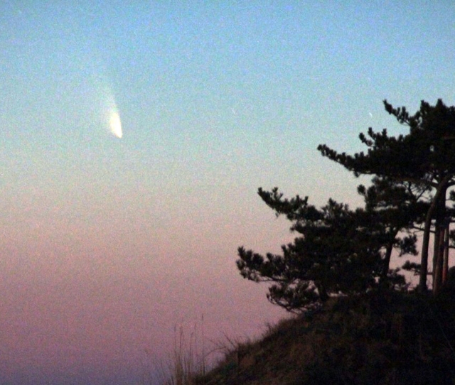 山田さんが撮影したパンスターズ彗星。うっすら銀の尾は神秘的だ=市内鴎が鼻地内 (2013/03/21)