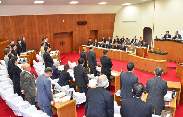 市議会本会議で行われた2013年度一般会計当初予算案の採決=25日午前 (2013/03/25)