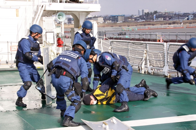 柏崎港で行われたテロ対策合同訓練=5日、同港 (2013/03/06)