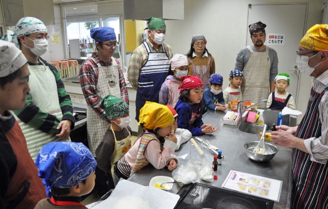 子どもと一緒にクッキー作りに挑戦した柏崎オヤジ倶楽部の参加者=市民プラザ (2013/03/08)