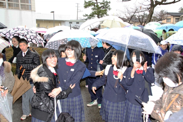 雨が降る中、常盤高で行われた合格発表 (2013/03/13)