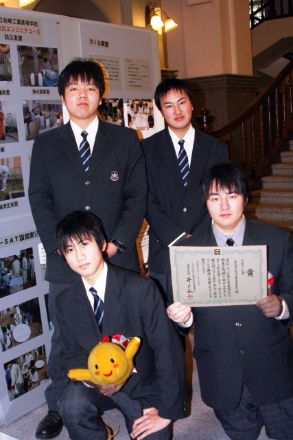 ぼうさい甲子園の表彰式に臨んだ柏工3年生=13日、神戸市 (2013/01/17)