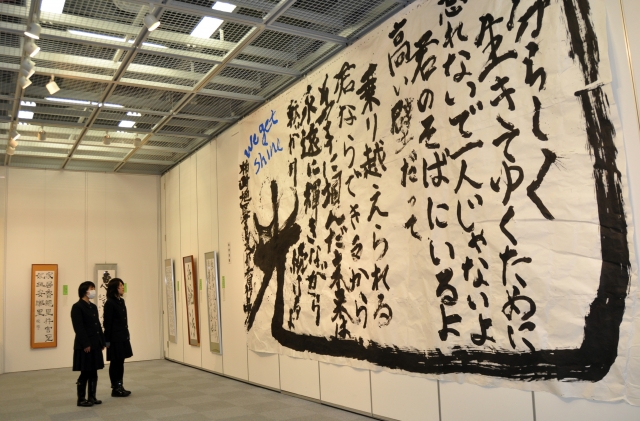 19日までの会期で高校生の幅広い作品が展示される「美術工芸、書道α展」=ソフィア (2013/01/18)