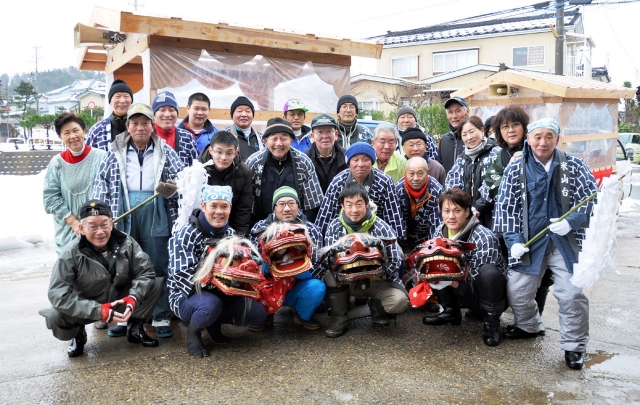 町内約800世帯に“福”を届けた米山台の獅子舞=2日、米山台福祉センター (2013/01/05)