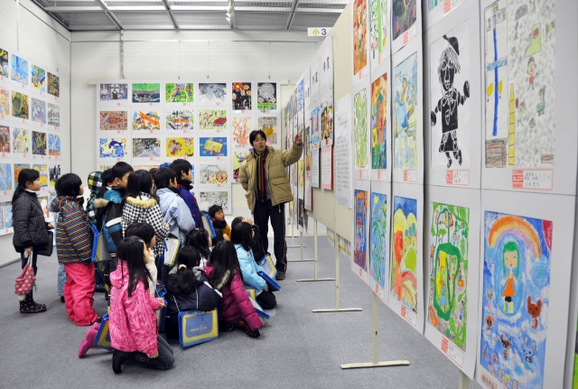 県ジュニア美術展で作品を鑑賞する柏崎小2年生=10日午前、ソフィアセンター (2013/01/10)