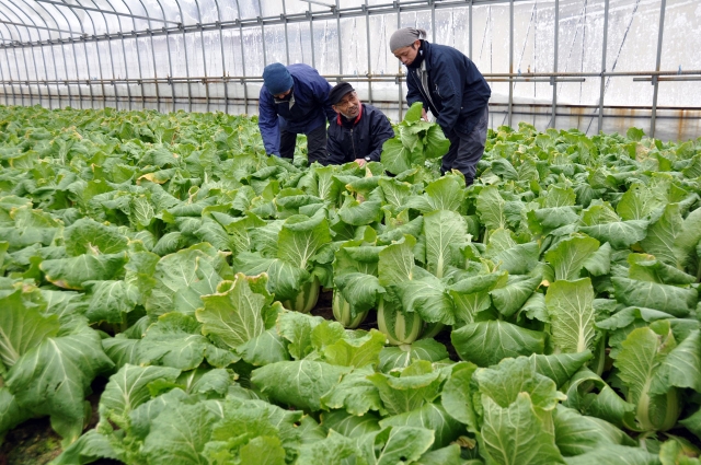 県の認証制度を受け、ハクサイの栽培に取り組む専農経営者会議=市内花田の園芸ハウス (2013/01/11)