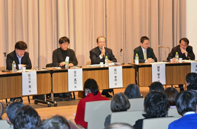 原発県民投票をめぐって開かれたシンポジウム=13日、新潟市の県立生涯学習センター (2013/01/15)