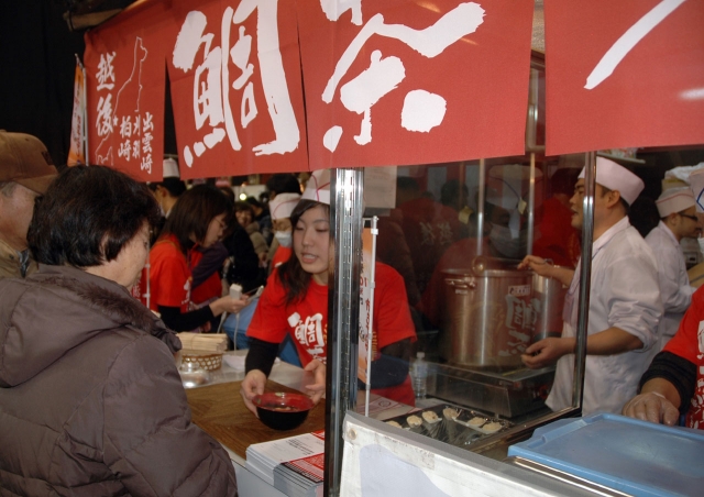 東京ドームの「全国どんぶり選手権」で熱い戦いを繰り広げている鯛茶漬けブース (2013/01/16)