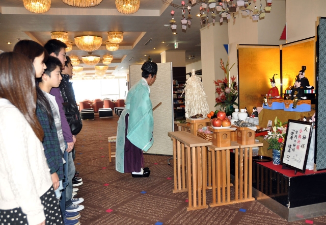 天神様を前に祈願する受験生=市内番神2、岬ひとひら (2012/11/29)