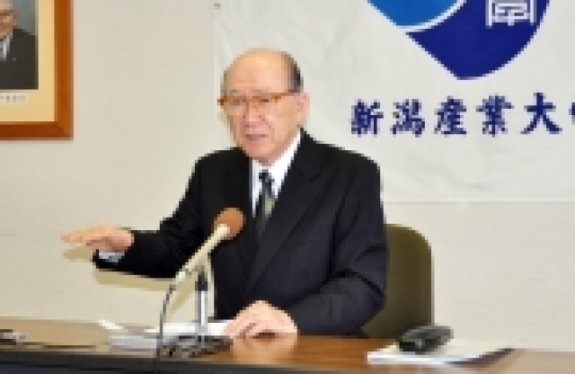 新潟産大次期学長に就任する北原保雄氏の会見=産大会議室 (2012/11/30)