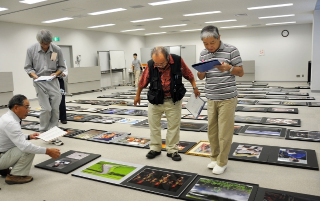 市展の開幕を前に、各部門で慎重に行われた審査=1日、ソフィアセンター (2012/10/02)