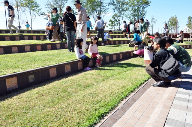 アルフォーレ・劇場広場で親子製作のメモリアルタイルお披露目会=8日午前 (2012/10/09)