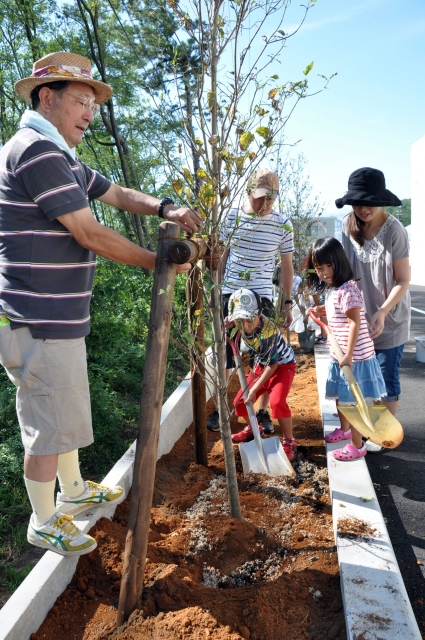 ハナミズキの若木を植える参加者=16日、刈羽村刈羽の「とうりんぼ」 (2012/09/18)