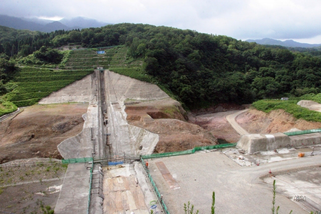 本年度で基礎掘削が終了する鵜川ダム (2012/09/19)