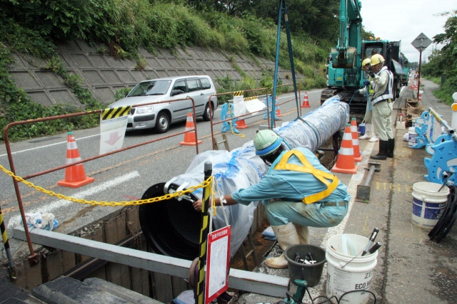 国道8号線を掘削して行われている導水管入れ替えの耐震化工事 (2012/09/27)