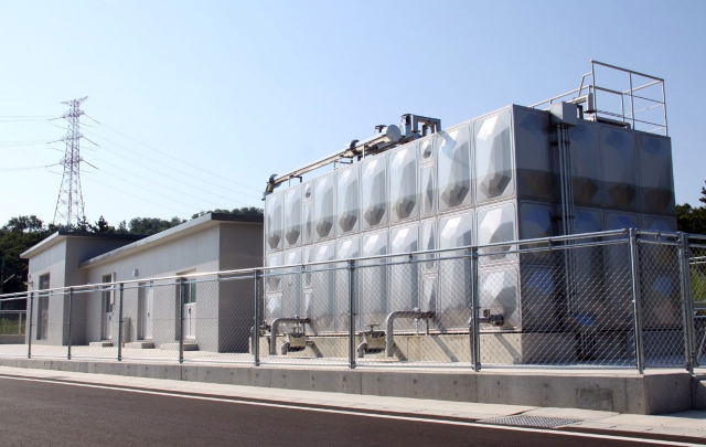 市からの給水開始を前に、新設工事が完成した送水ポンプ場=刈羽村 (2012/09/06)