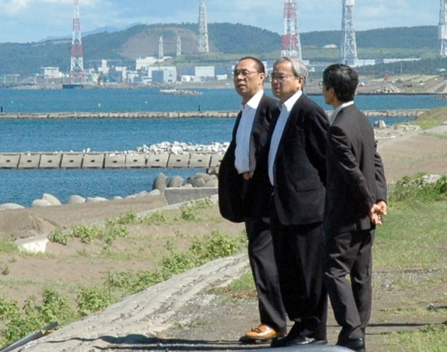 蓮池さん夫妻の拉致現場を視察する片桐裕・警察庁長官=12日、市内中央海岸 (2012/09/12)