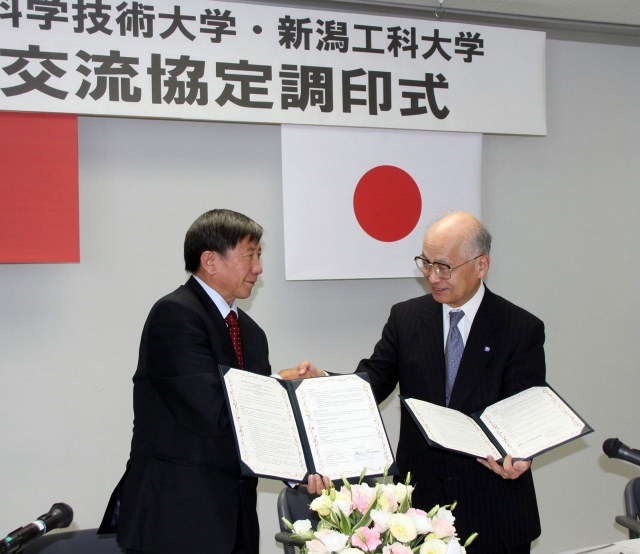 留学生受け入れ協定の調印をする工科大、モンゴルの大学の学長 (2012/09/14)