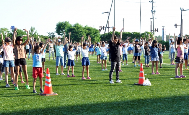 600人が元気に参加した中央地区の夏休みラジオ体操会=5日、少年広場 (2012/08/07)