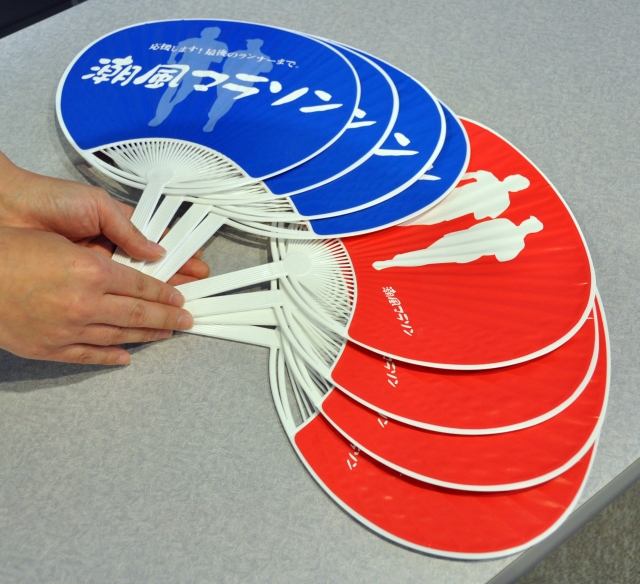2年ぶり開催の潮風マラソンを盛り上げる手作りうちわ (2012/05/17)