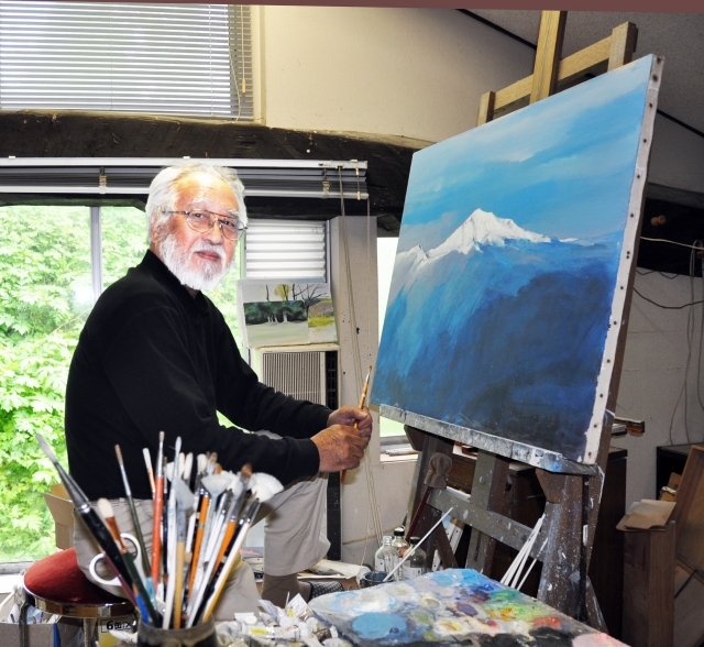 傘寿記念の二つの展覧会を前にした岩下尊弘さん=市内大平の自宅アトリエ (2012/05/24)