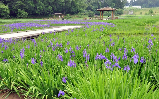 カキツバタの紫色の花が池を彩る柏崎・夢の森公園=25日 (2012/05/25)