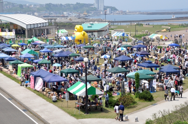 みなとまち海浜公園でにぎやかに開幕した「かしわざき風の陣」=26日午前 (2012/05/26)