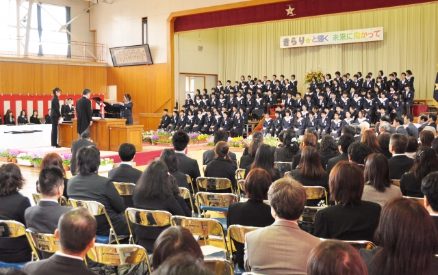 卒業生106人に証書が手渡された比角小の卒業式=23日、同校体育館 (2012/03/23)