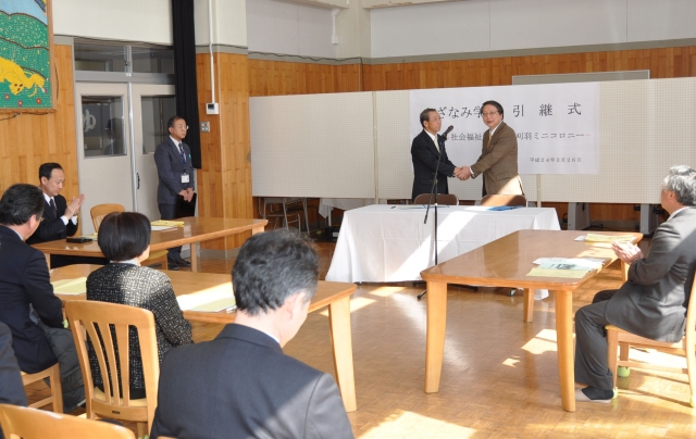 4月から民営化する知的障害児施設「さざなみ学園」の引き継ぎ式=26日、同学園 (2012/03/27)
