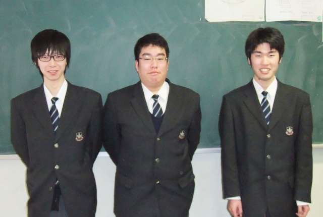 機械保全2級に合格した柏工の3人。この春卒業し、就職、進学へとそれぞれの道を歩む (2012/03/28)