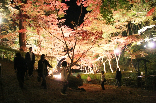 大勢の人が訪れている松雲山荘のライトアップ=4日午後6時半ごろ (2011/11/05)