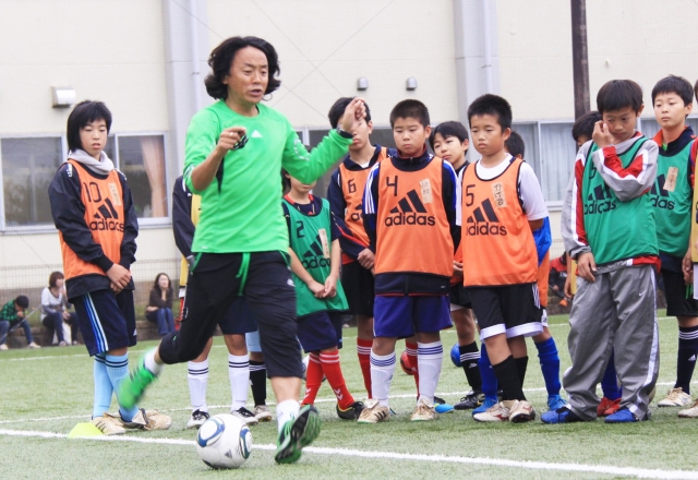 JC小学生サッカー教室で指導する元日本代表の北澤豪さん (2011/11/08)