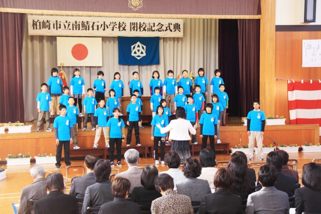 閉校記念式典で「心の花を咲かせよう」を歌う児童=12日、南鯖石小 (2011/11/14)