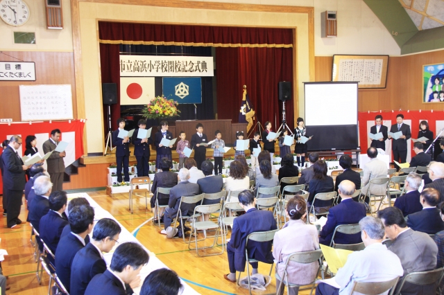 110年の校史に惜別の思いを込めた高浜小の閉校記念式典=29日、同校 (2011/10/31)