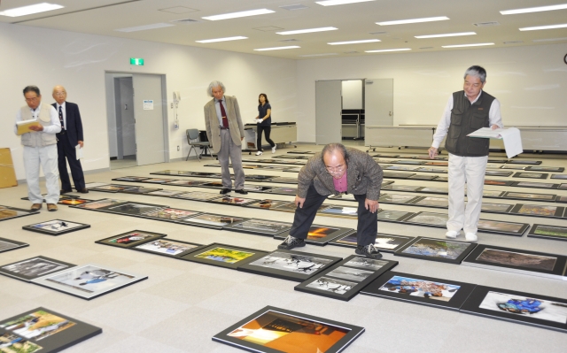 市展の開幕を前に、各部門で慎重に行われた審査=3日、ソフィアセンター (2011/10/04)