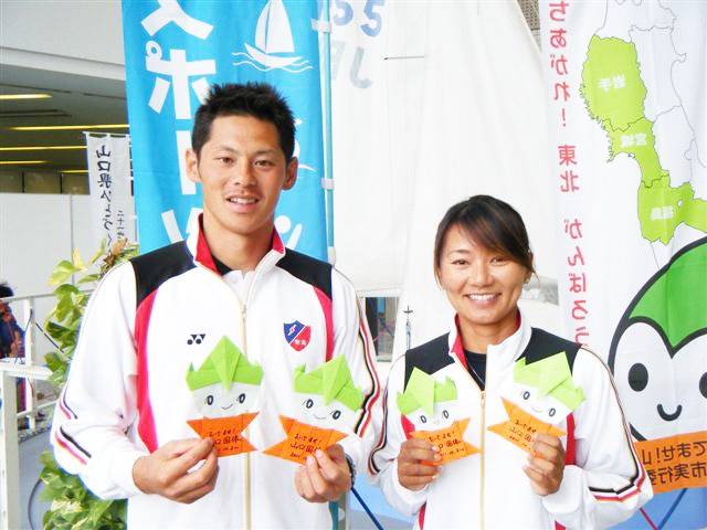 国体ウインドサーフィンの成年男子3年連続優勝の富沢選手と成年女子3位の小菅選手 (2011/10/06)