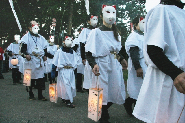ちょうちんの明かりが幻想的な雰囲気をつくり出した「狐の夜祭り」=9日、市内高柳町 (2011/10/11)