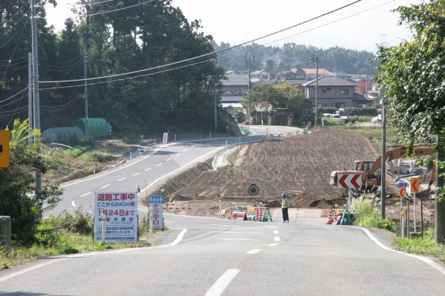 軟弱地盤から水分を抜き取り、県が道路改良を進める市内飯塚―刈羽村赤田町方間の主要道路鯨波宮川線 (2011/10/13)