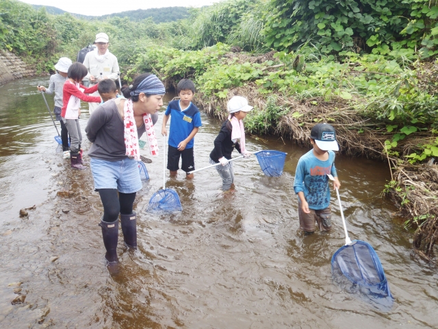 田んぼの学校で川の生き物を探す子どもたち (2011/09/08)