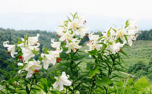 米山を望むイボ山で見ごろとなった市の花・ヤマユリ (2011/07/28)