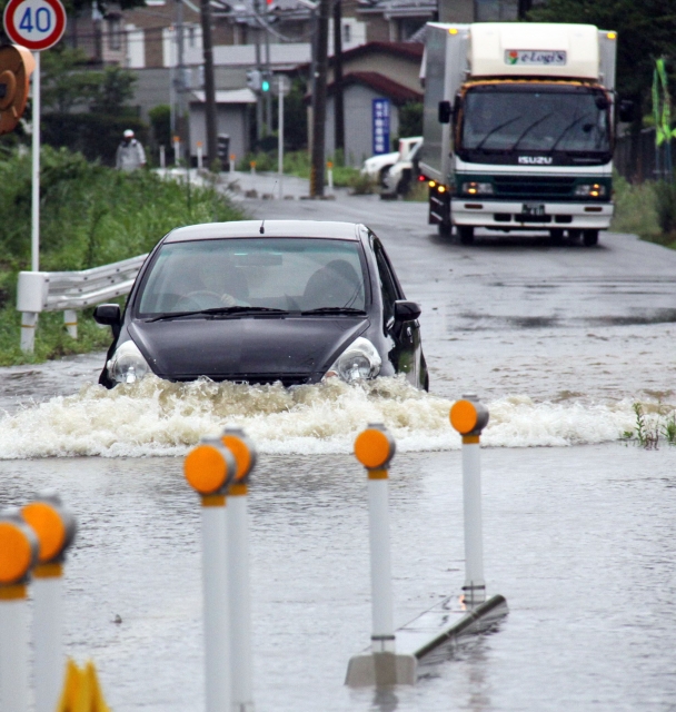 大雨で冠水した市内南半田地内の市道=30日午前8時ごろ (2011/07/30)
