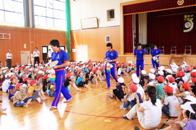 世界大会水球出場のブルボンKZ日本代表迎え、荒浜小で激励会=7日 (2011/07/08)