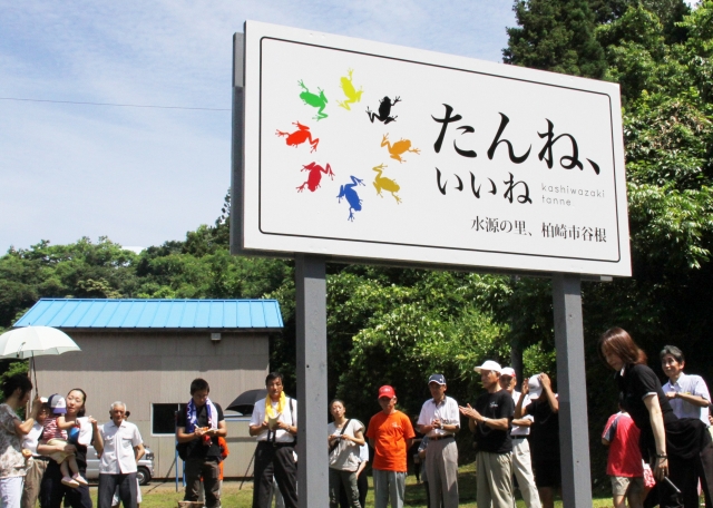 今秋、市内谷根地内で行われる「たんねのあかり」のイベントを前に、集落入り口に立てられた看板 (2011/07/12)